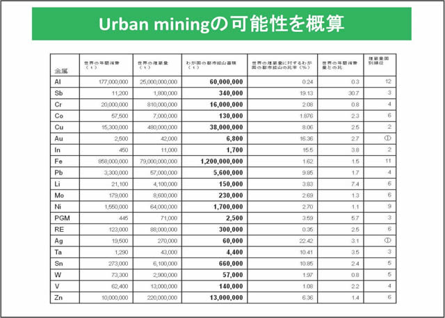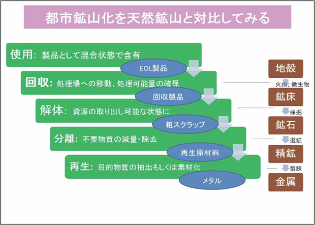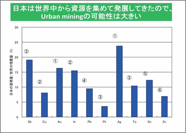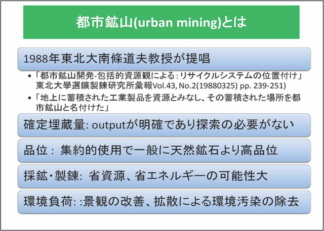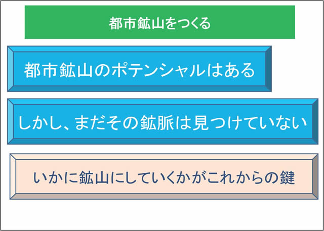 資源供給リスクが増大する中で世界的にもアーバンマイニングの可能性が注目されているが、まだその「鉱脈」を形成するには至っていない。本発表では、アーバンマイニングの対象となる地上資源の現状とそれを実際のリサイクルに結び付けていく上での課題について紹介する。