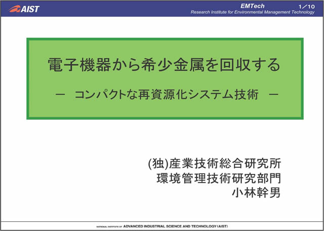 | 発表者:独立行政法人産業技術総合研究所 環境管理技術研究部門副部門長小林 幹男 |
