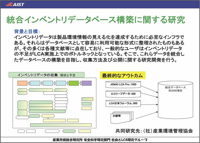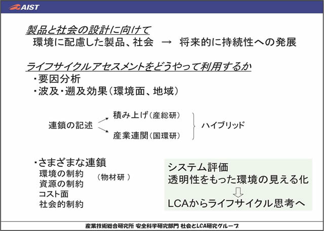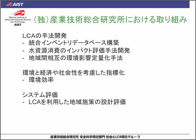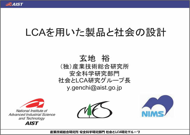 | 発表者:独立行政法人産業技術総合研究所 安全科学研究部門 社会とLCA研究グループ長玄地 裕 |