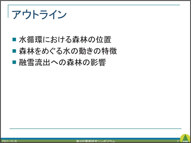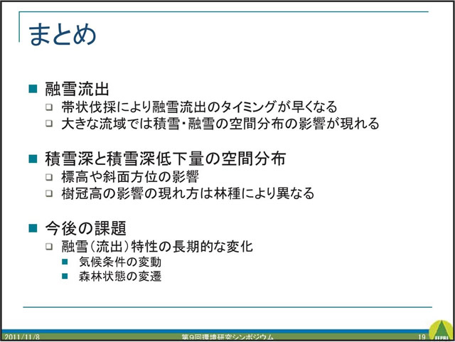 | 発表者:独立行政法人森林総合研究所 水土保全研究領域長坪山 良夫 |