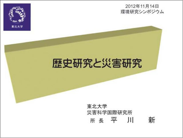 | 講演者:東北大学災害科学国際研究所 所長平川 新 |