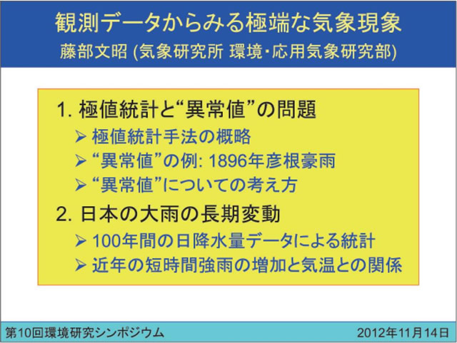 | 講演者:国土交通省気象庁気象研究所 環境・応用気象研究部 室長藤部 文昭 |